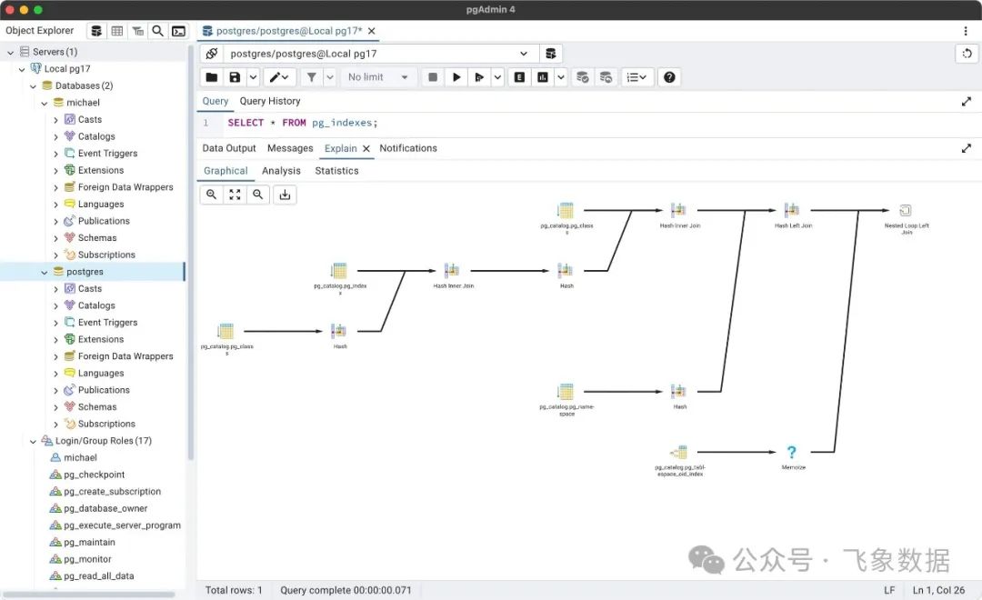 还有更多的 explain 可视化工具,包括几个包含它们的 IDE,其中许多看起来与 pgAdmin 中的这个类似: