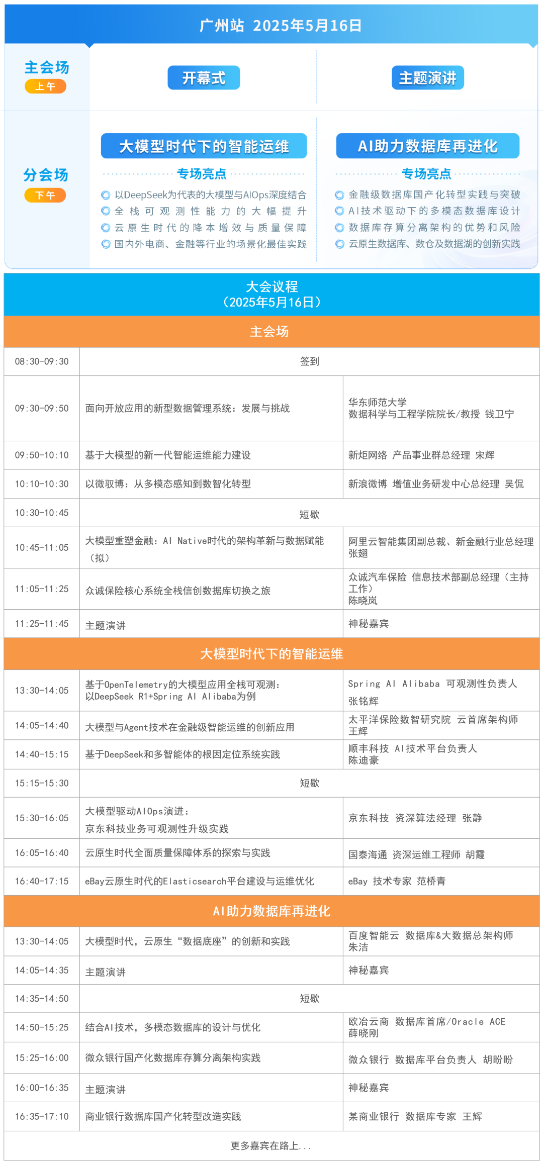 本次大会将聚焦于大模型、AI Agent等新兴技术推动及融合之下,运维与数据库两大领域的发展趋势和创新应用,部分演讲嘉宾及干货议题先睹为快: