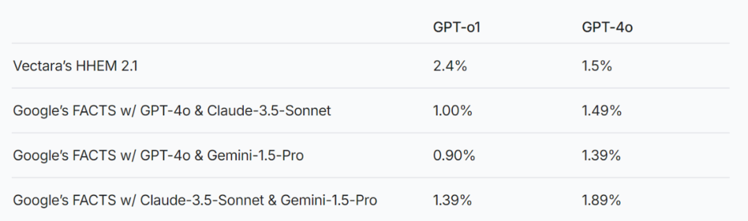 图片来源于Vectara研究人员进一步提出,推理增强的模型可能会产生更多幻觉,而这一点在其他推理增强模型中也有所体现。例如,GPT 系列的 GPT-o1(推理增强)和 GPT-4o(普通版)之间的对比显示,推理增强模型的幻觉率通常也较高。