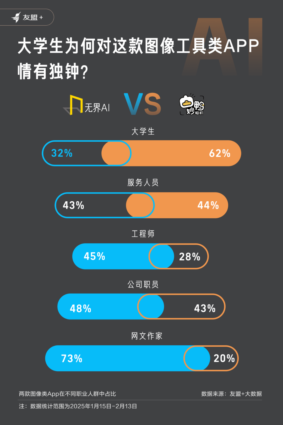 然而,大学生和职场人士在AI图像工具的选择上,却展现出了截然不同的偏好。