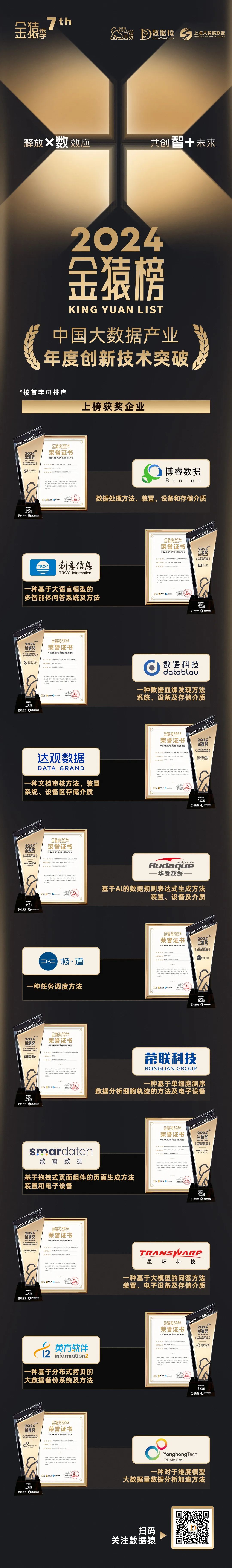 ⑤《2024中国大数据产业年度创新「技术突破」》榜单/奖项