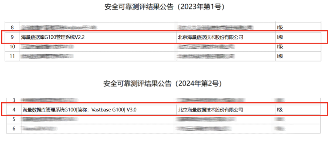 1. 安全可靠评测(中国信息安全测评中心+国家保密科技测评中心-安全可靠等级 I 级):Vastbase V2.2版本、V3.0版本均通过国家安全可靠测评。