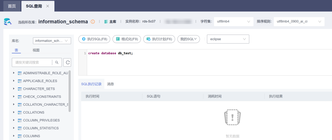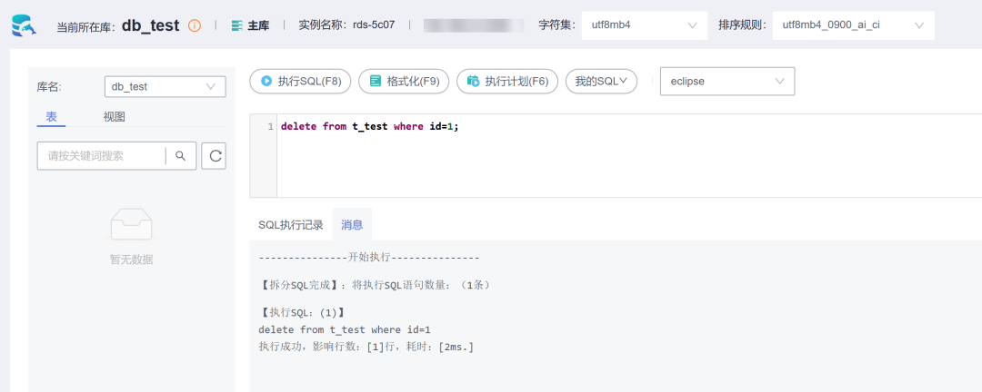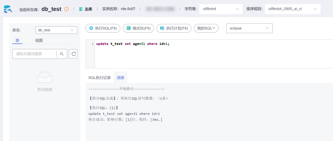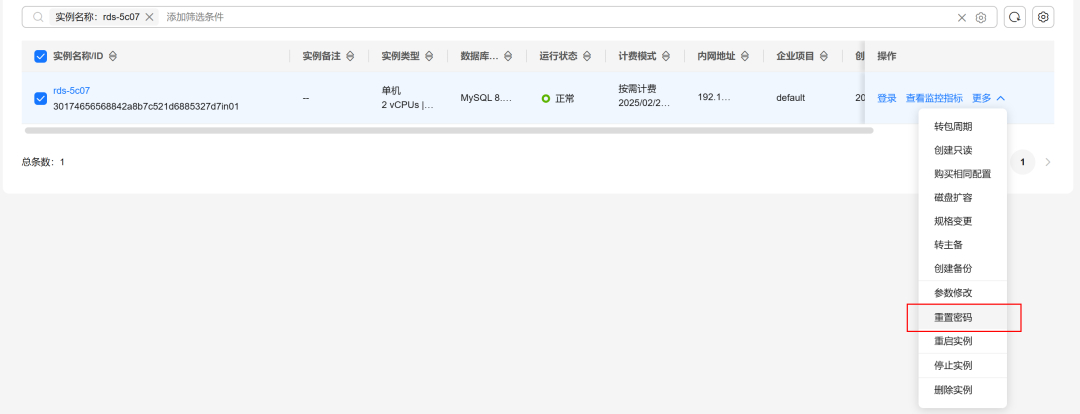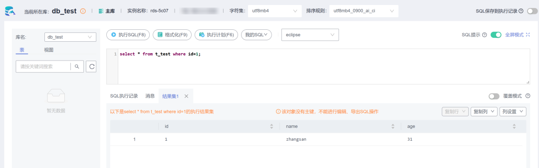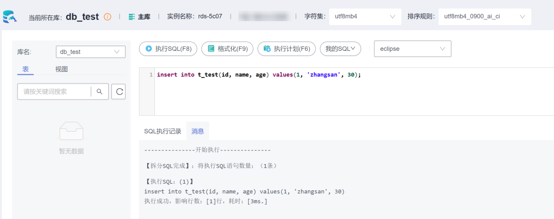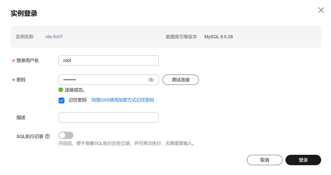 100%兼容原生MySQL,稳定可靠,高性能,智能运维,高等级安全保障,即开即用,弹性伸缩。如上所示,在华为云业务控制台中,显示已订购完成的RDS for MySQL实例如上所示,MySQL数据库安装完成,需要重新设置初始化密码,才能登录使用,在华为云业务控制台中,使用重置密码功能,重新设置初始化密码如上所示,在华为云业务控制台中,输入新的密码,重置初始化密码如上所示,在华为云业务控制台中,使用重新设置的密码,登录MySQL数据库管理平台如上所示,在华为云业务控制台中,输入新的密码,登录MySQL数据库管理平台如上所示,在华为云业务控制台中,登录MySQL数据库管理平台完成如上所示,在MySQL数据库管理平台中,创建测试数据库db_test如上所示,在MySQL数据库管理平台中,在测试数据库db_test中,创建测试数据表t_test如上所示,在MySQL数据库管理平台中,在测试数据表t_test中,添加一条新纪录如上所示,在MySQL数据库管理平台中,在测试数据表t_test中,查询纪录如上所示,在MySQL数据库管理平台中,在测试数据表t_test中,更新纪录如上所示,在MySQL数据库管理平台中,在测试数据表t_test中,查询更新的纪录如上所示,在MySQL数据库管理平台中,在测试数据表t_test中,删除记录如上所示,在MySQL数据库管理平台中,在测试数据库db_test中,删除测试数据表t_test如上所示,在MySQL数据库管理平台中,删除测试数据库db_test