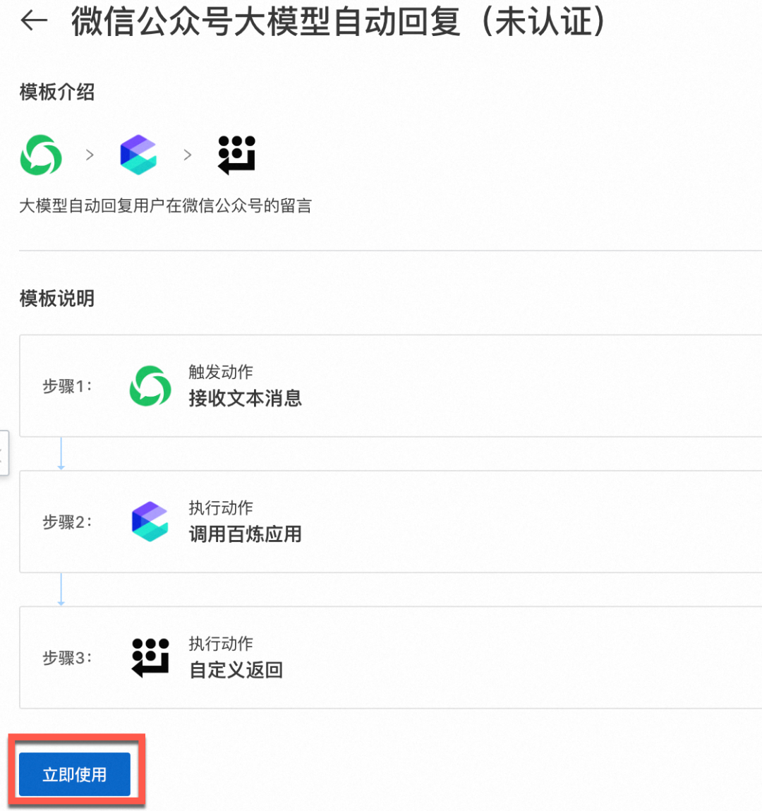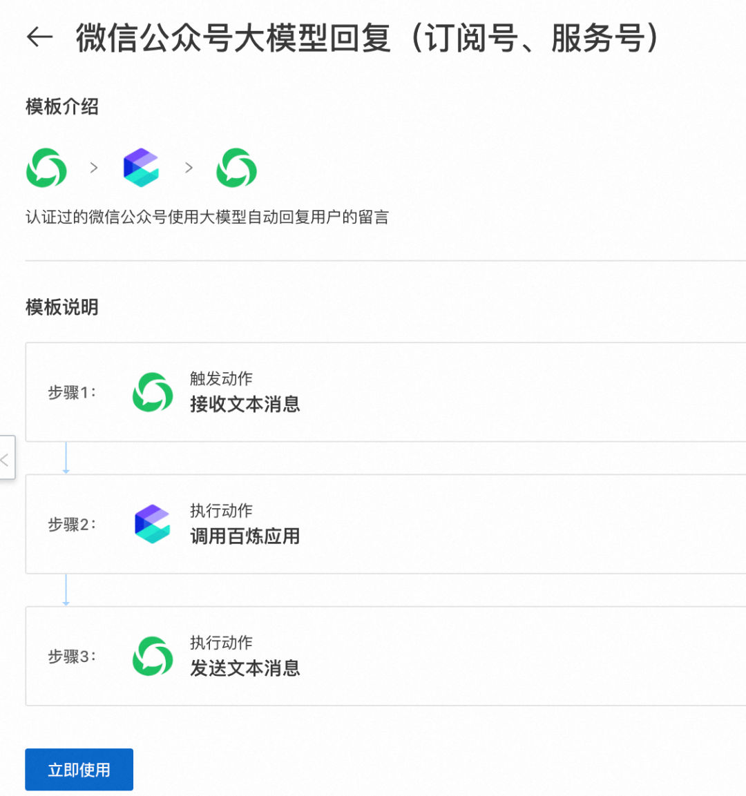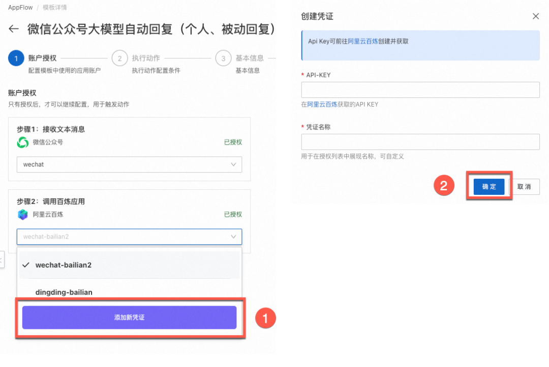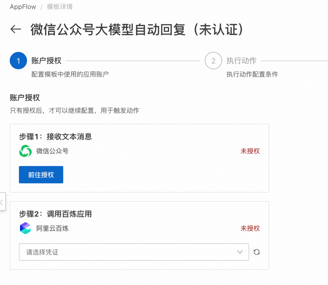 ,在阿里云AppFlow业务控制台中,创建对接未认证的微信公众号的应用流