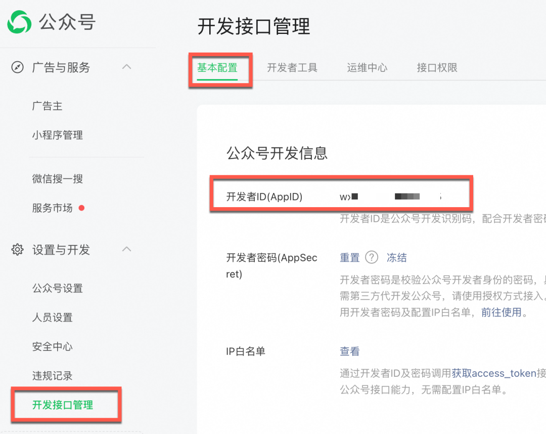 如上所示,在微信公众号业务控制台中,获取微信公众号平台的开放接口的应用AppID,提供给阿里云应用流AppFlow对接