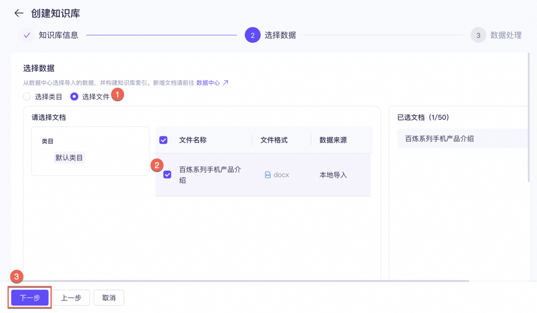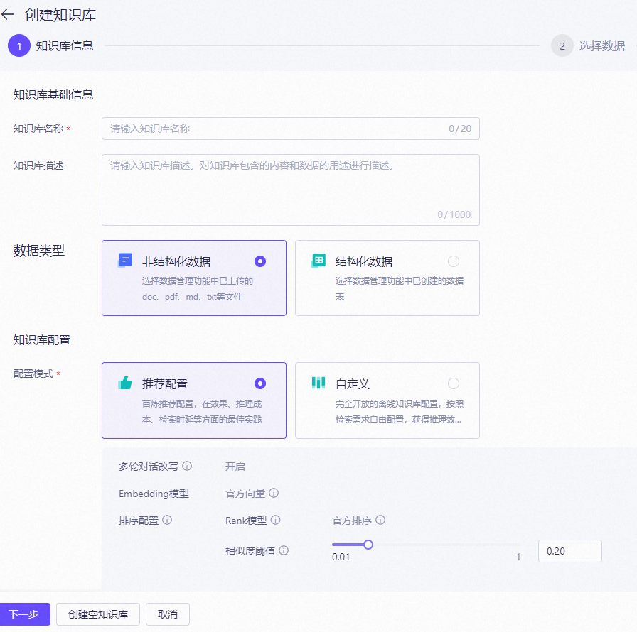 ,在阿里云百炼人工智能业务控制台中,使用数据管理功能以及导入的业务数据创建业务知识库,提供给智能体应用对应的大模型检索以及学习