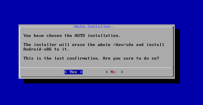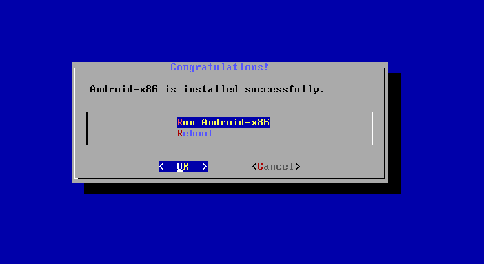 如上所示,使用自动安装Android-x86操作系统完成