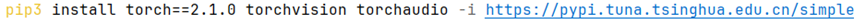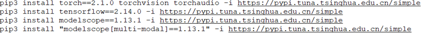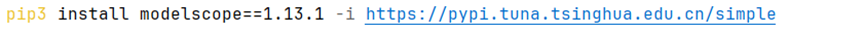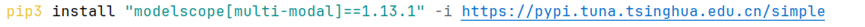 如上所示,安装ModelScope大模型基础库开发框架的命令行参数,使用清华大学提供的镜像地址