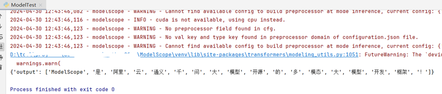如上所示,在JetBrains PyCharm的项目工程终端控制台中,安装ModelScope大模型多模态领域开发框架