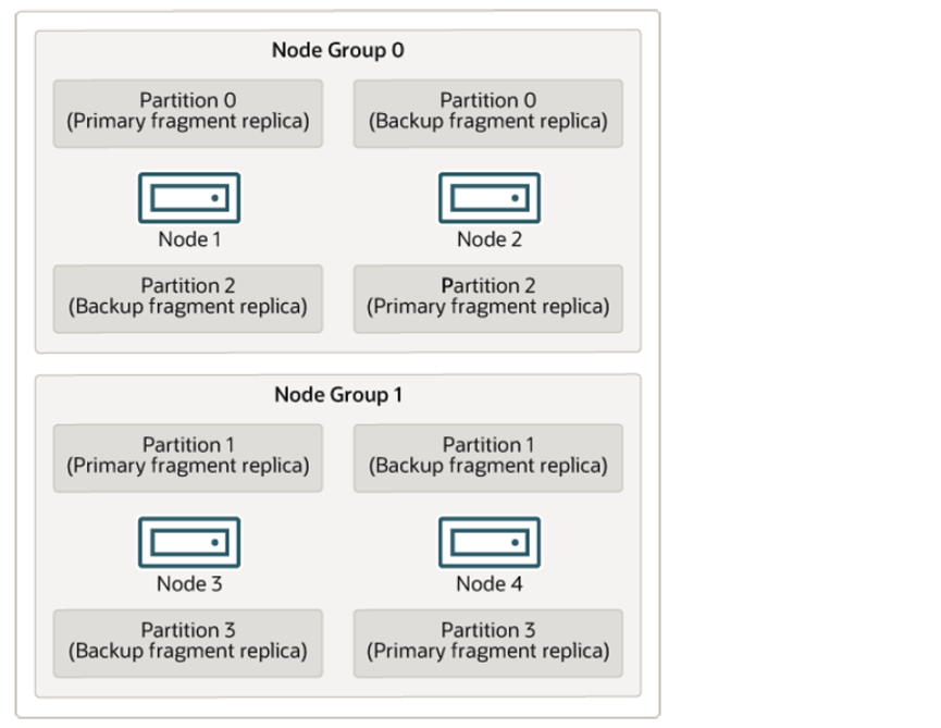 Group 1(Node3以及Node 4),存储的数据被分为4个数据分区(Partition 0、Partition