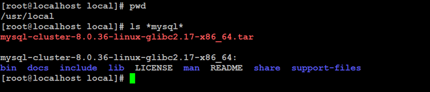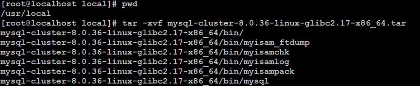 如上所示,解压MySQL Cluster 8.036版本的官方安装文件到安装目录、在安装目录中创建连接文件夹mysql
