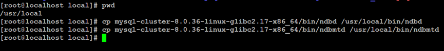 如上所示,在Linux CentOS 7中设置开机启动MySQL Cluster 8.036版本