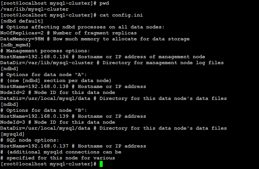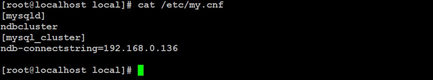 Management node (mgmd) 数据管理节点 | 192.168.0.136 |
