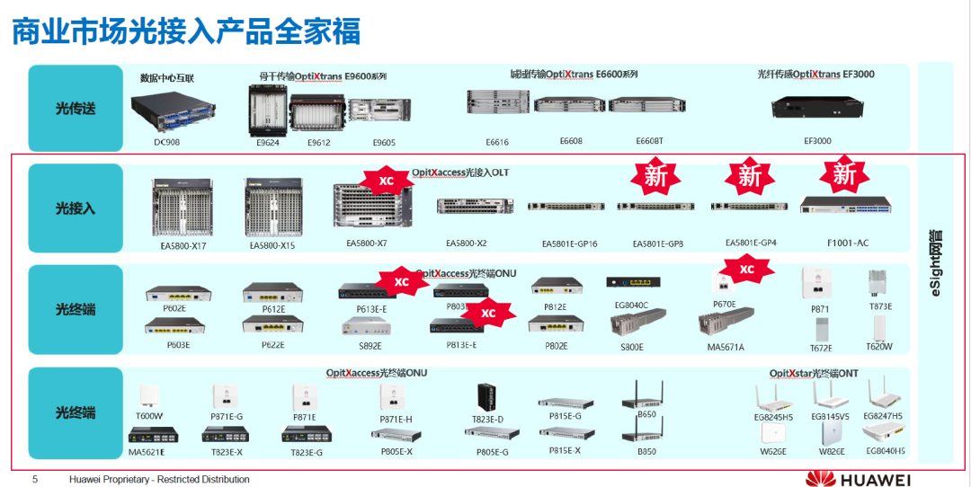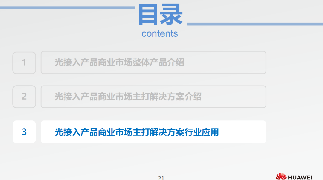 华为OptiX智简全光网战略,通过打造智能、极简、超宽、无处不在的下一代全光网络,为每个人、每个家庭、每个组织带来极致的业务体验。基于该战略,面向全光传送、全光数据中心、全光园区三大场景,聚焦三大OptiX系列产品 - 光传送OptiXtrans、光接入OptiXaccess、光终端OptiXstar进行持续性创新,以引领全球光产业的发展。借助在ISP、能源、交通、金融、教育、医疗、制造等全行业的应用,助力光纤从家庭到房间、从厂房到机器、从办公室到桌面,打造无处不在的光联接。
