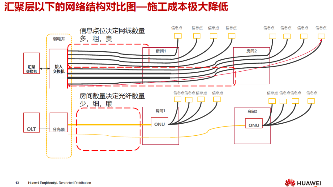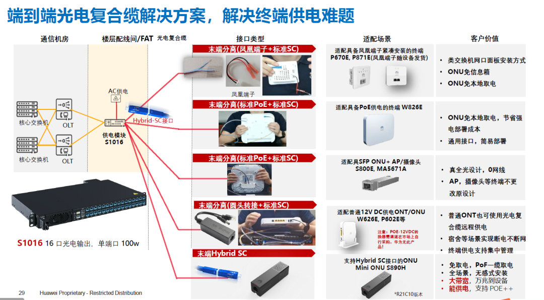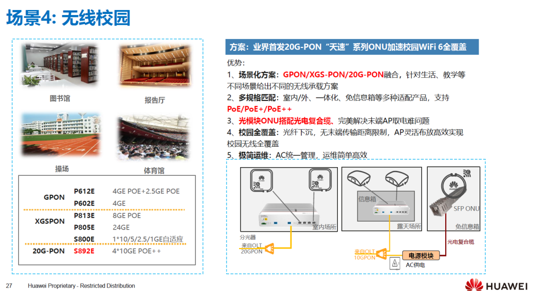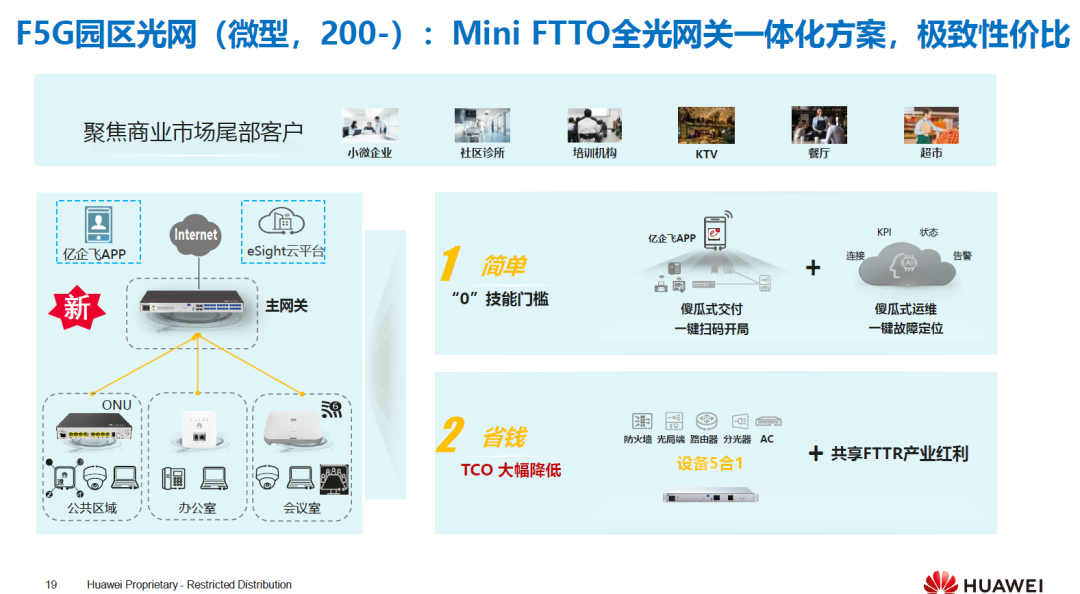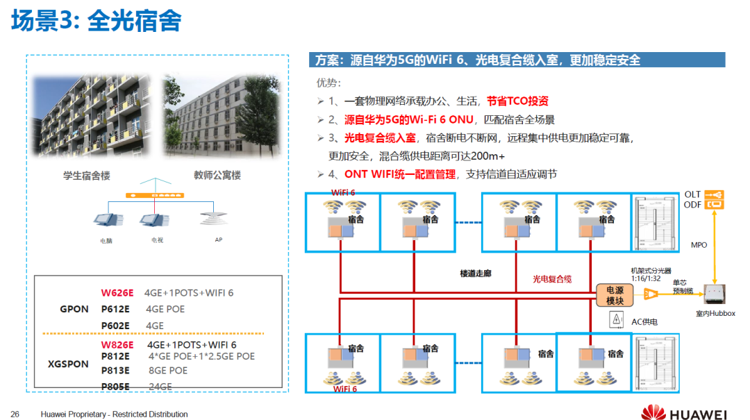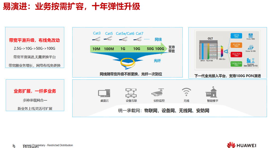 随着全球碳中和实践发展,光进铜退是必然发展趋势,园区网络全光化已经成为新一代智慧园区的新名片。相较传统网络方案,全光园区采用光纤下沉,将光纤从弱电机房延伸到每个房间,每个桌面,每个机器,实现一张光网络承载园区所有应用,在带宽、部署范围、运维成本、使用周期上具有显著的优势,高度契合园区应用云化、物联网、超清视频等业务发展诉求,帮助行业客户打造绿色、极简的智慧园区网络,获得了教育、医疗、酒店等行业客户的一致认可,目前应用到了全球50多个国家6000多个客户。