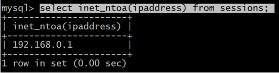 insert into sessions (ipaddress)values (inet_aton('192.168.0.1'));