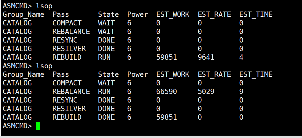 ALTER DISKGROUP CATALOG REBALANCE power 1;