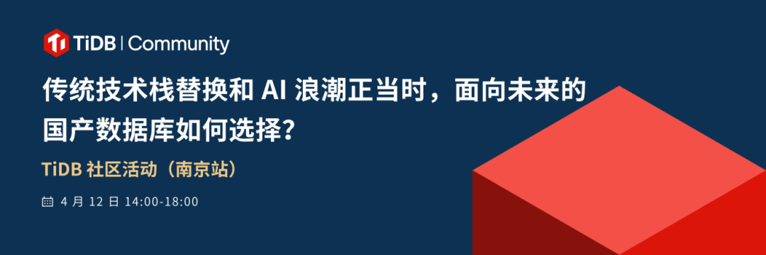 🚀 我们诚邀 TiDBer 和对数据库感兴趣的朋友们,4 月 12 号一起共探技术前沿!在这里,你将感受到 TiDB 开源、开放的社区氛围,与来自不同行业的技术专家和同行们面对面交流,让当下和未来的技术选择更加清晰!