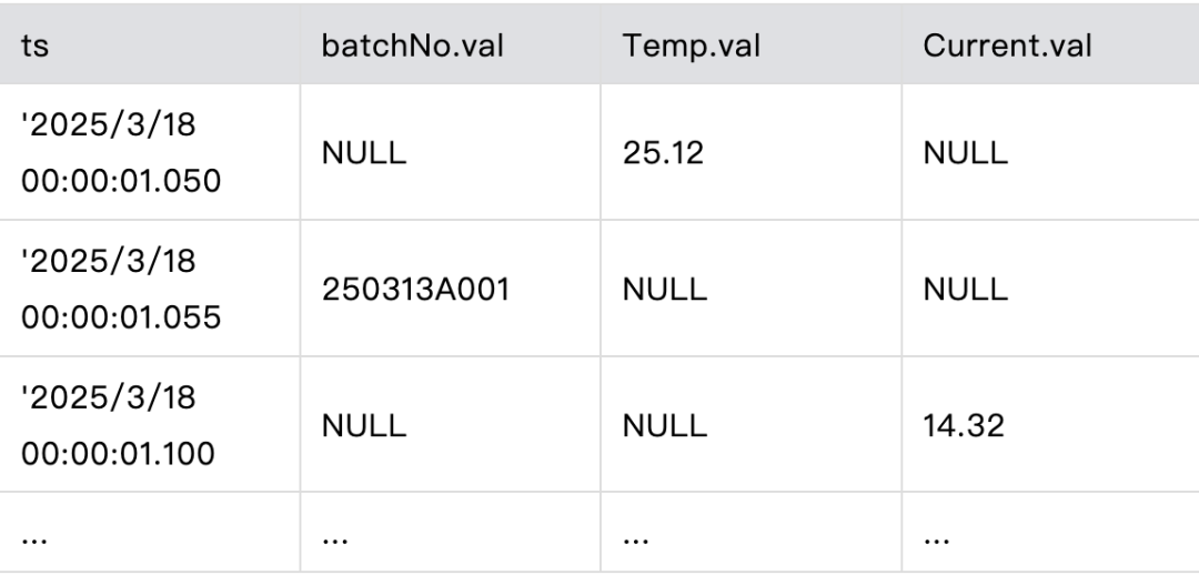 在工业数字化进程中,设备数据采集多采用“KVQT”单列模型(即测点名、变量值、质量戳、时间戳),这与工控传统协议紧密相关。例如,通过 OPC 设备采集时,底层设备上传的数据多为单列模型,而非多列数据模型。这种模式导致数据采集与上层应用之间存在明显割裂,业务与底层数据难以统一。在后续业务查询中,如 30 列宽表查询展示,在使用 SQL 语句场景下,操作极为复杂,需要多次 join 操作,效率低下。