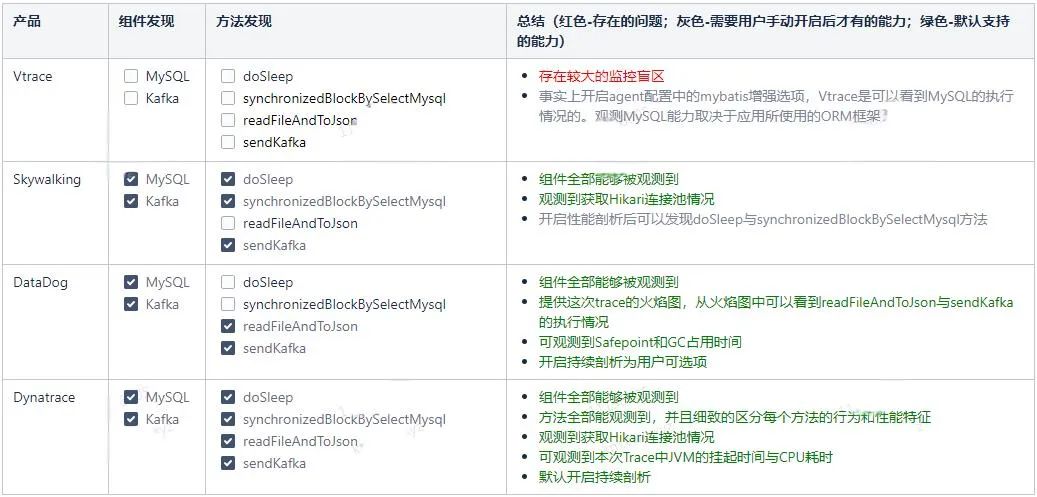 同类产品对比分析:通过SkyWalking、DataDog和Dynatrace三款产品的Trace观测程度对比分析,从产品的视角去获得Vtrace的优化思路。