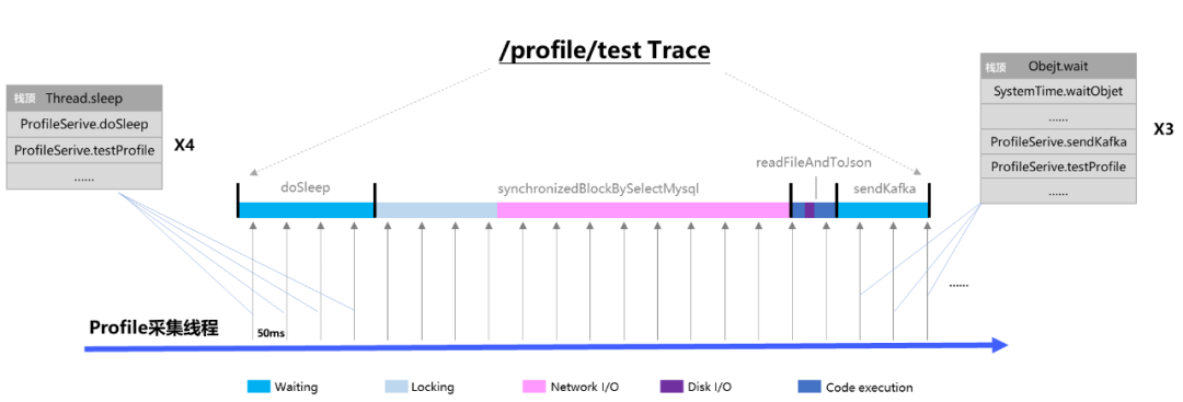 如果这个trace是使用到多线程会整个trace会多个不同的traceSegmentId,每个异步线程的相关Profile数据也会被采集到。