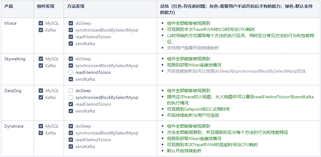 在完成上述三个产品的Trace分析后,结合当前Vtrace产品,做了一些对比: