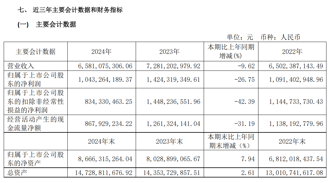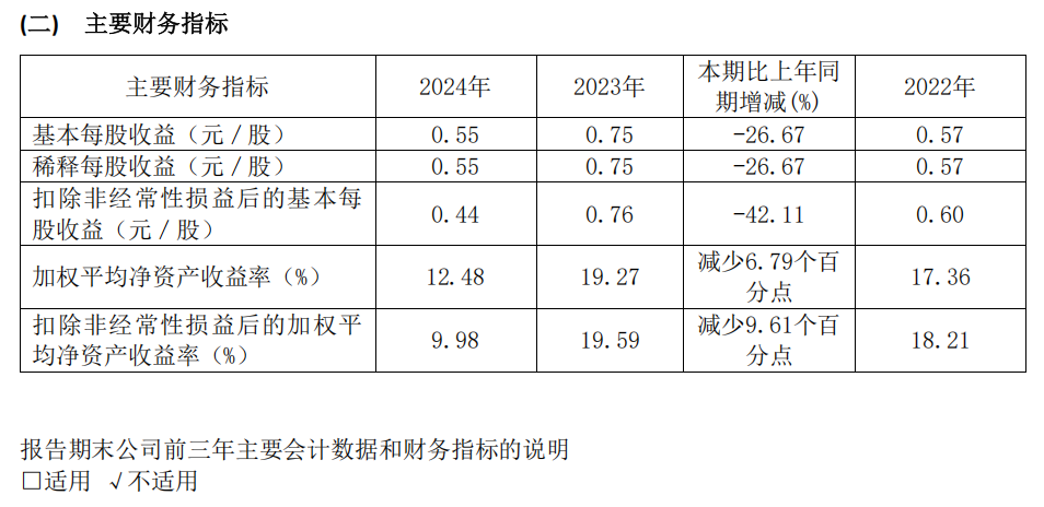 其中第四季度,公司营业收入为23.9亿元,同比下降17.9%;归母净利润为5.98亿元,同比下降26.9%;扣非归母净利润为5.67亿元,同比下降37.7%;EPS为0.3156元。