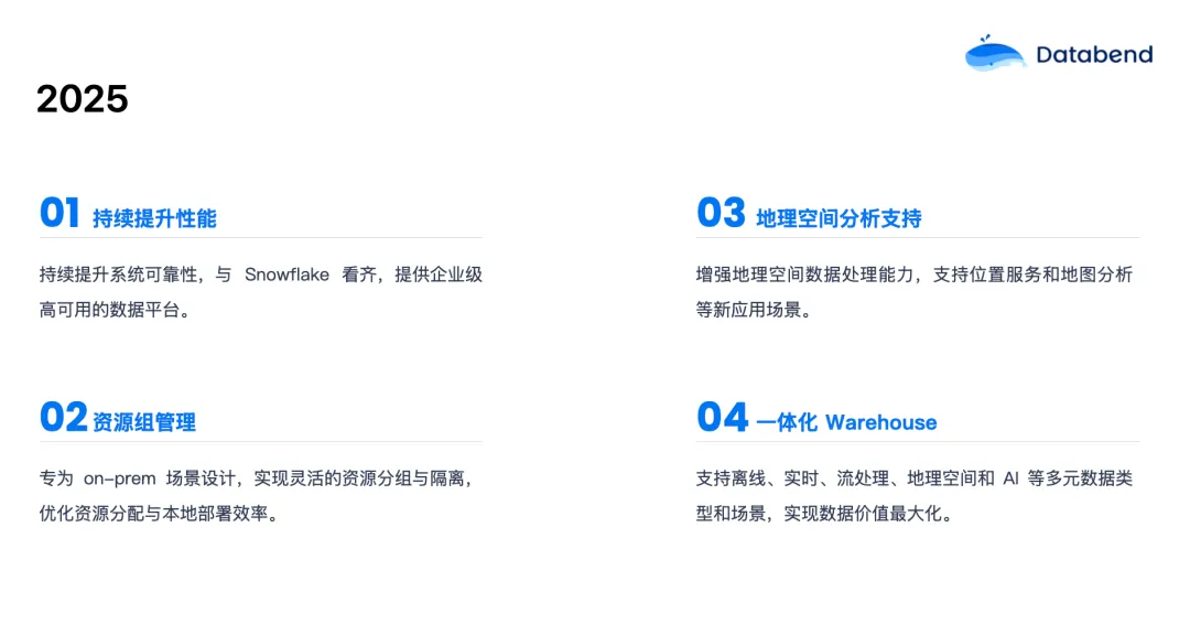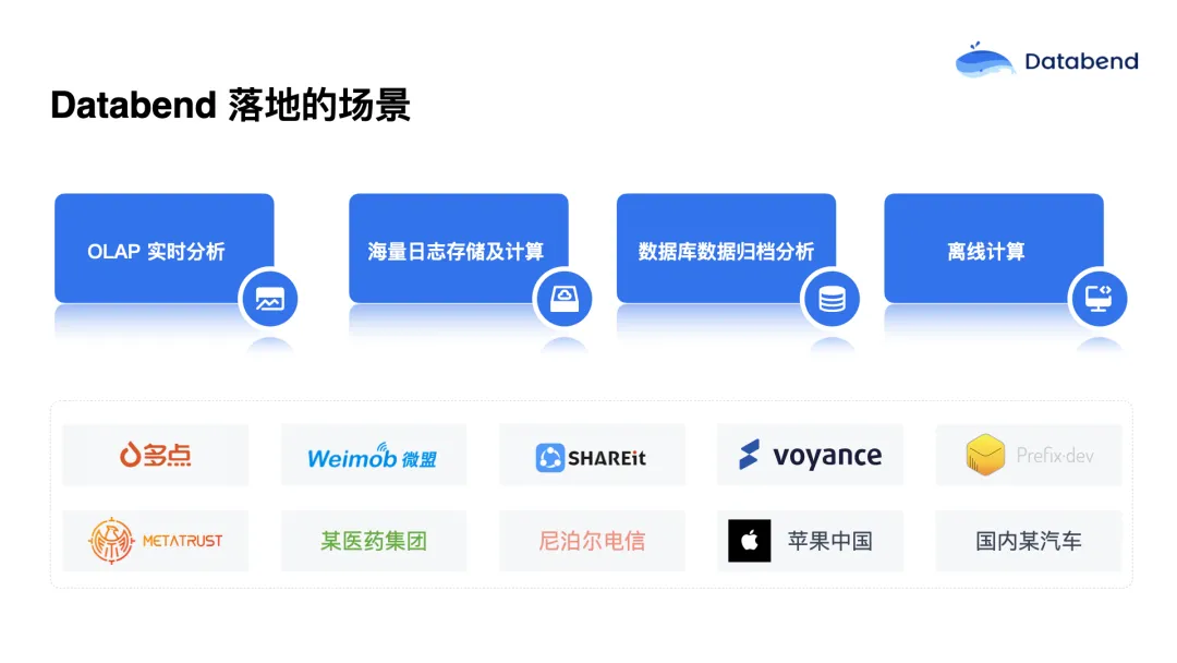 2024 年,Databend 也在美国本土的一些医药公司成功部署 Databend。这些都是比较幸运获得的一些头部客户,也是未来几年关注的重点方向。