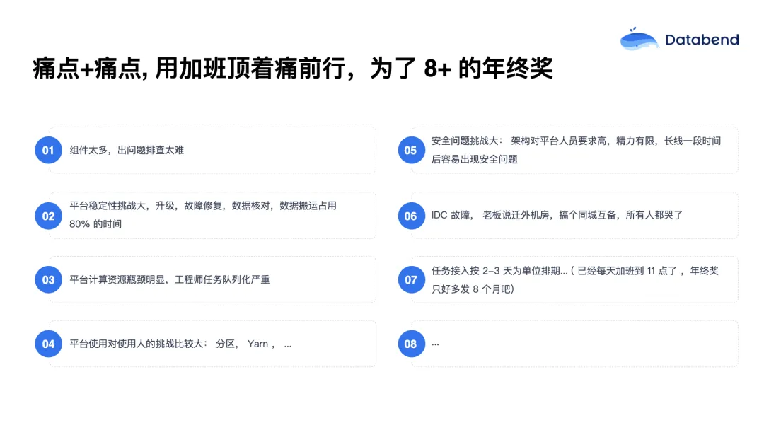 Databend 目前所做的工作是从过去的数据仅能“存起来”,逐渐转变为切入业务场景,直接帮助业务提升效率。