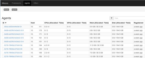 mesos.master日志:用于查看集群中主机资源的总汇聚情况;
