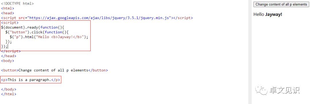 而与此次jQuery漏洞联系比较紧密的是html()等方法,此方法返回或设置被选元素的内容 (inner HTML),可用于设置所有选定元素的内容,看一个简单的使用案例:
