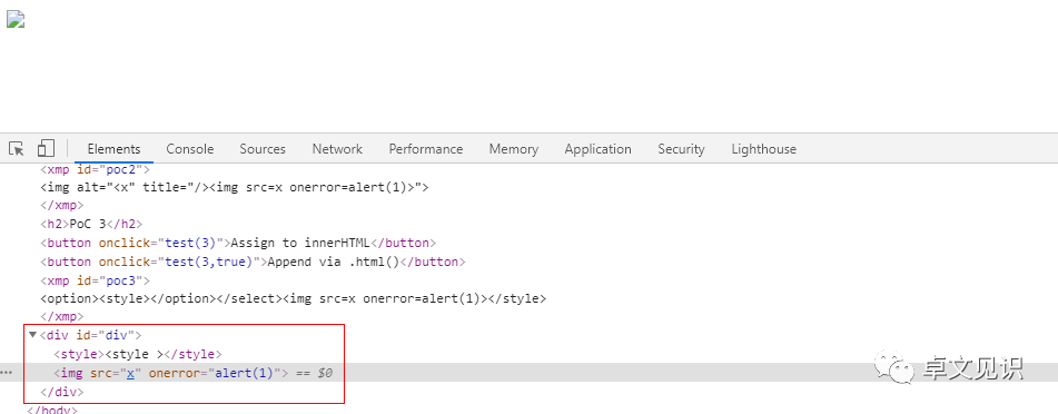 虽然三个poc都使用了包含onerror事件的img标签,但其实它们是放在属性或style元素内部,因此会绕过HTML清理器。