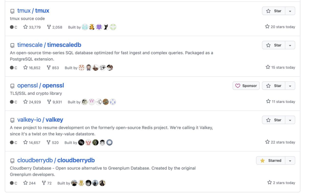 🎉 Cloudberry Database 在 7 月份连续多天上榜 GitHub 热门项目 - C 语言类别热门榜单!