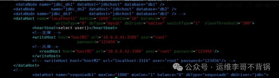 <writeHost host="hostM1" url="10.0.0.41:3306" user="root" password="123456">
