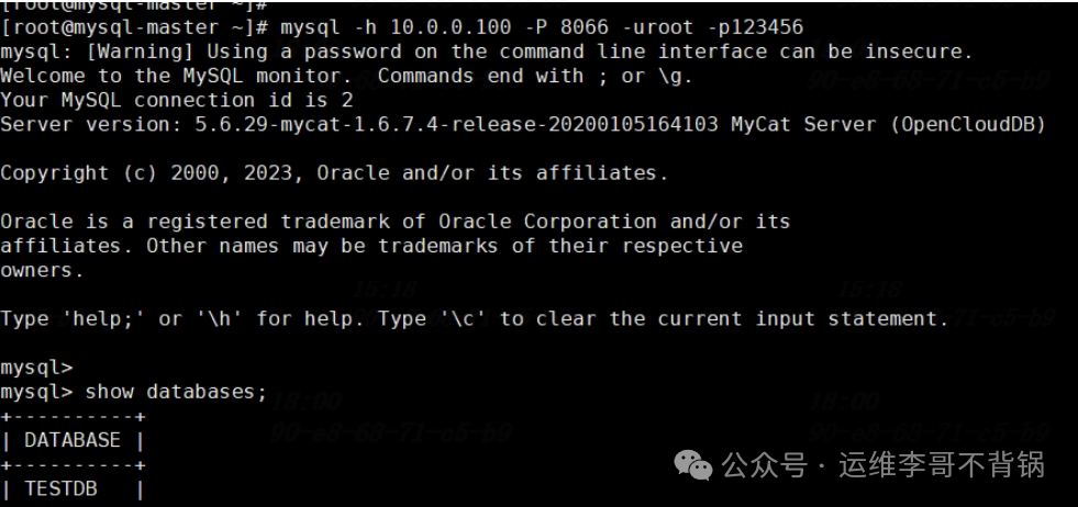 mysql -h 10.0.0.100 -P 8066 -uroot -p123456