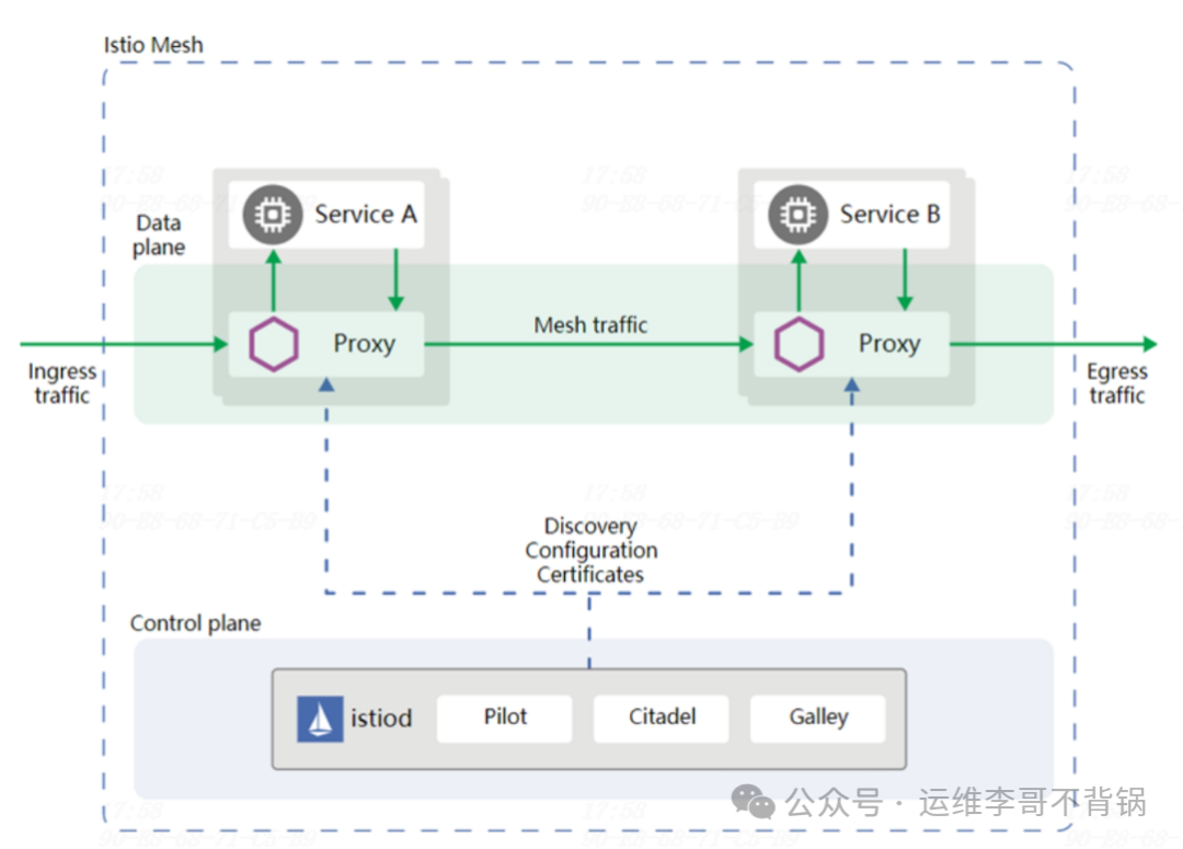 注:图片来源网络Istio的架构主要由数据平面Envoy和控制平面Istiod两部分组成。