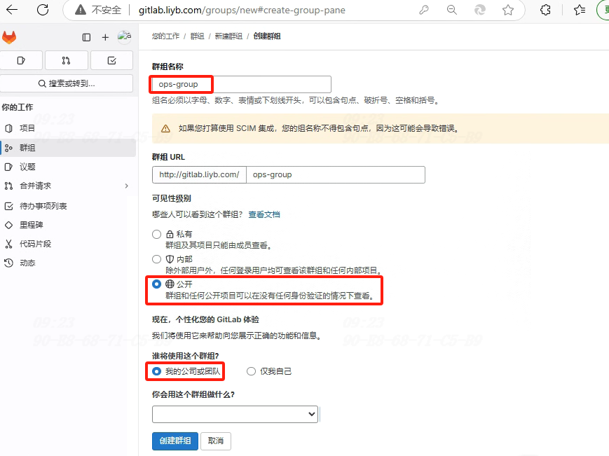 GitLab首页->新建群组->创建群组