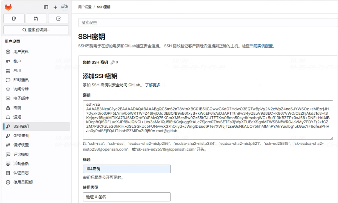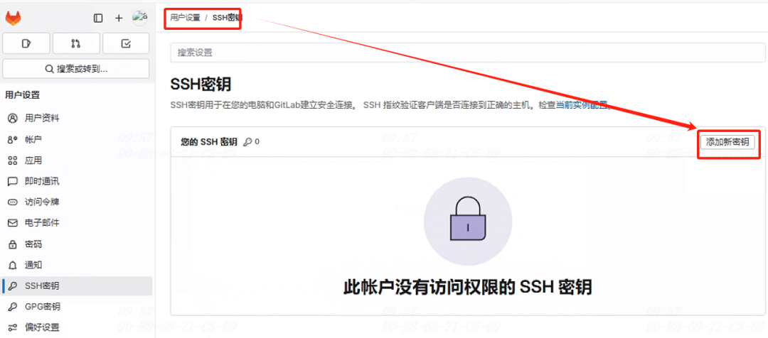 在gitlab上添加新密钥
