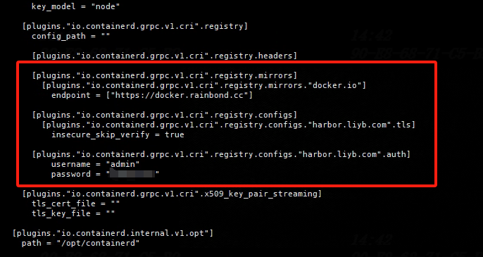 [plugins."io.containerd.grpc.v1.cri".registry.configs."harbor.liyb.com".tls]