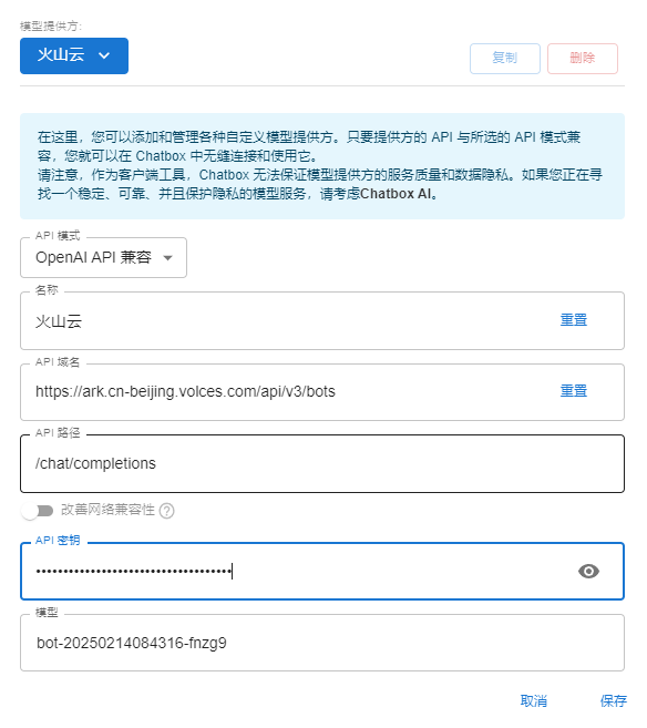 https://ark.cn-beijing.volces.com/api/v3联网功能配置要点