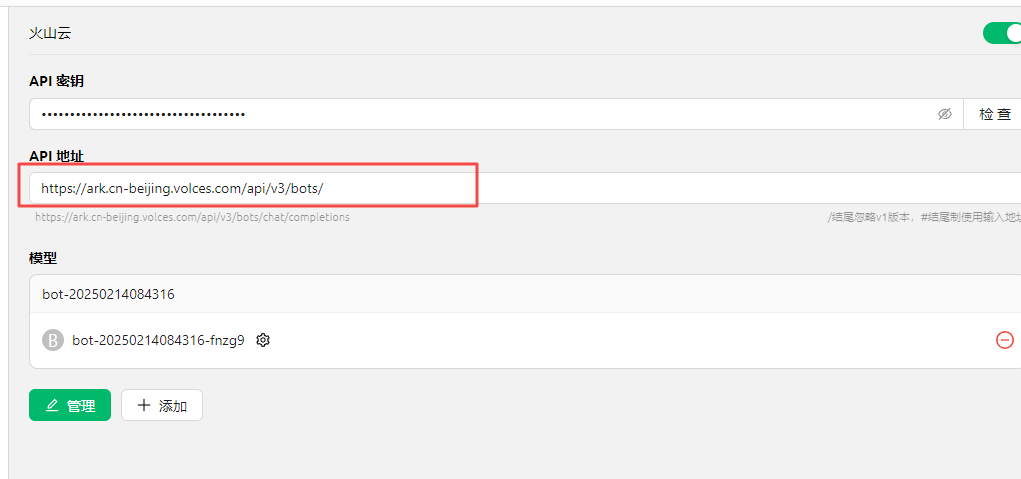 联网版与非联网版使用相同的API Key 联网版需要使用带"/bots"后缀的API地址 联网版使用bot ID作为模型标识符 使用Cherry Studio时需要额外添加斜杠: https://ark.cn-beijing.volces.com/api/v3/bots/