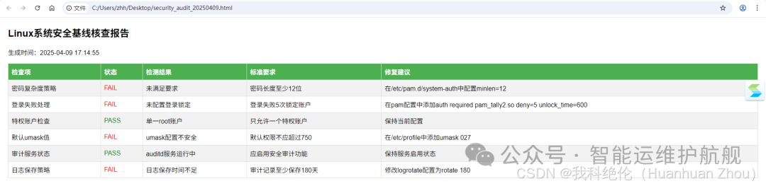 一、Linux等保核查脚本(linux_security_audit.sh)