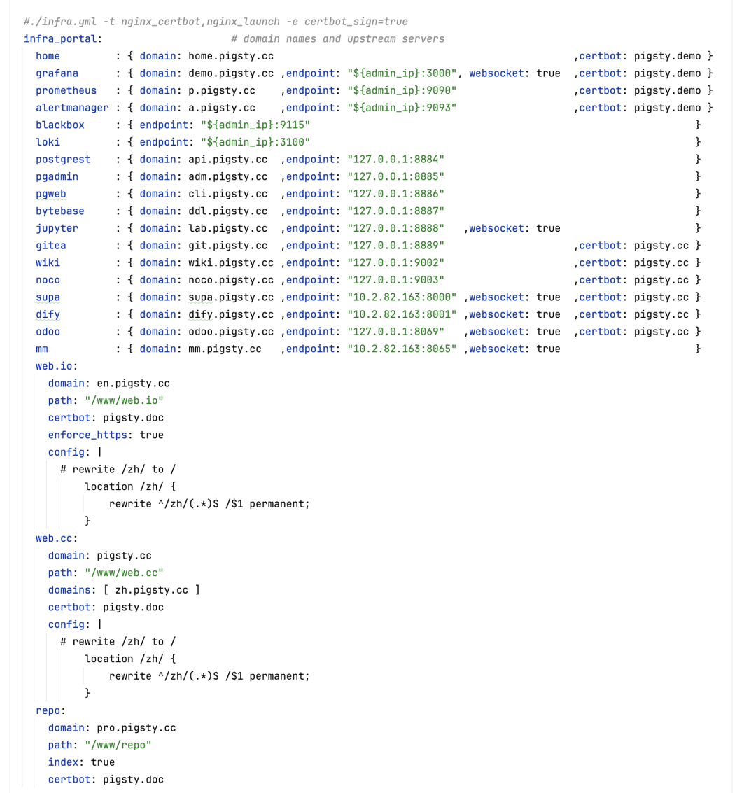 于是在这个版本里,Pigsty 对 Nginx 的配置进行了加强,现在如果用户在某个 Nginx Server 上定义了 certbot