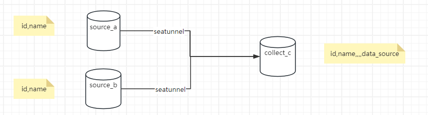我们的目标是将这两个源库的表数据 合并同步到一个目标库(我们称为 C 库),以便于统一分析和查询。