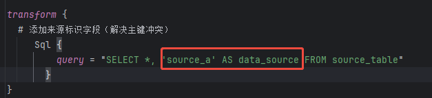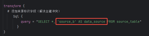 这里必须指定,包括原表的主键和我们 transform 阶段新增的 data_source