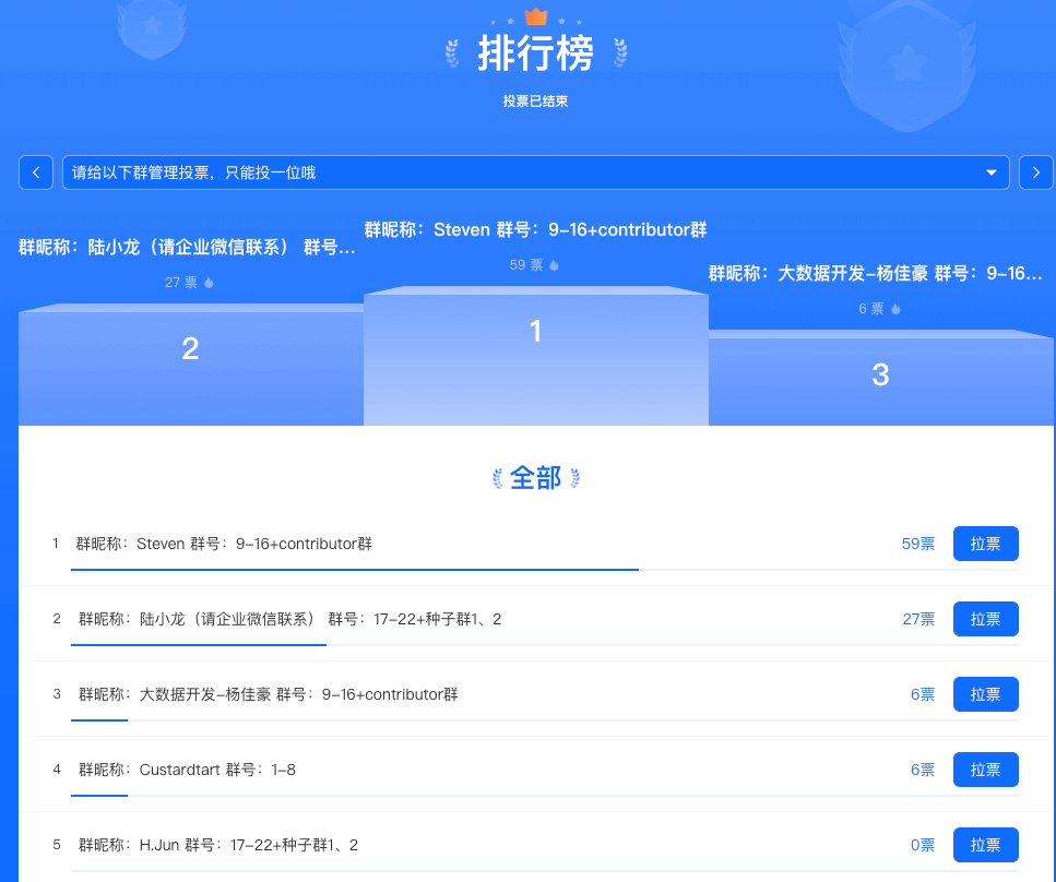 在广大社区成员的积极参与下,Apache DolphinScheduler社区答疑Star第一期评选活动圆满落幕!本次活动旨在表彰那些长期为社区用户提供专业解答、积极推动技术交流的社群管理员。经过社区成员的公开票选,在25个社区群中共有4位表现突出的管理员脱颖而出(因票数并列第三名共同获评)。让我们热烈祝贺以下获奖者(按排名顺序):