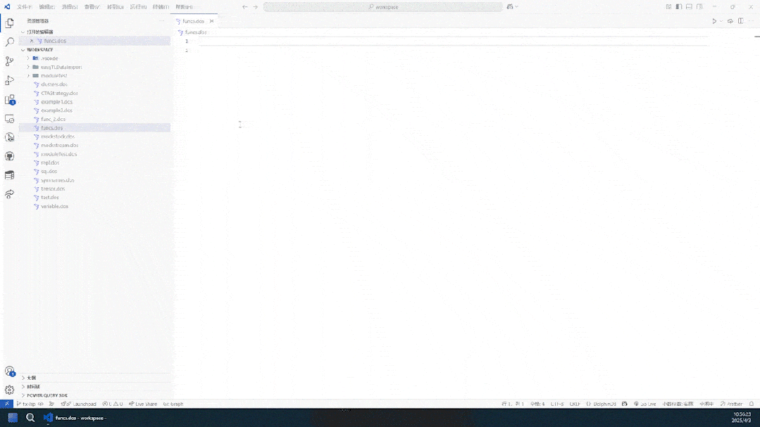 处于工作区内的模块文件中的函数,在编辑代码时可被自动补全。例如,在 LanguageServer::ModuleExample 模块中定义了一个函数,在工作区的其他文件中输入其名称的一部分,系统会自动补全,并在描述中显示该函数所属的模块。