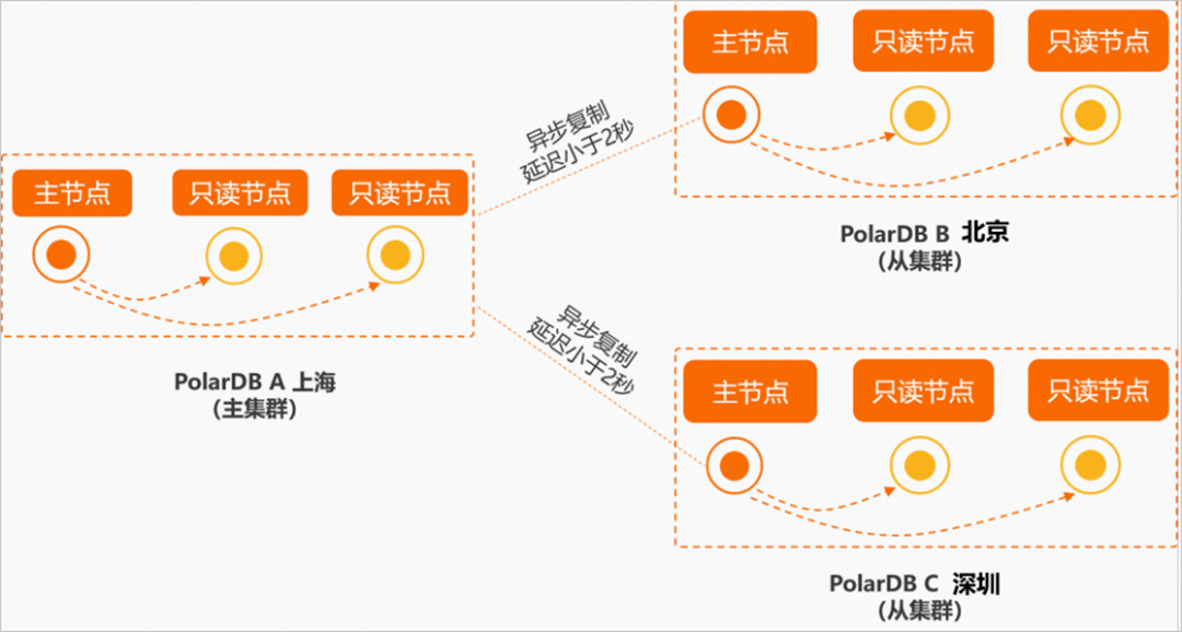 数据分布在两个可用区内,主可用区和备可用区各保存一份完整数据,备可用区异步复制主可用区数据。
