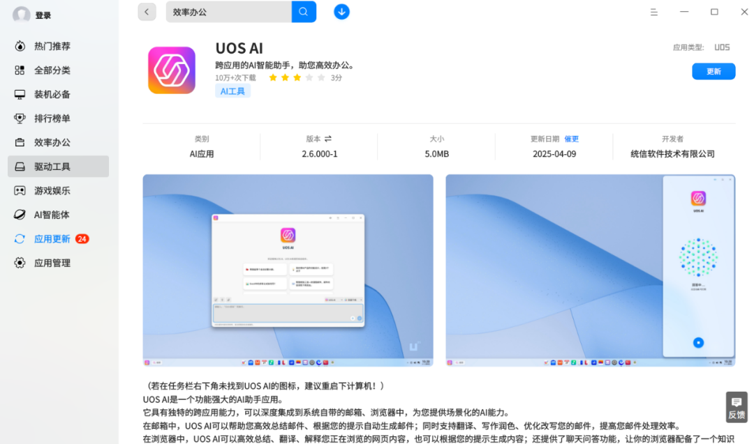 UOS AI 将持续进化,结合使用需求和场景,不断提升产品能力,快速融合领先的大模型、智能体,带来更智能化的优质体验。